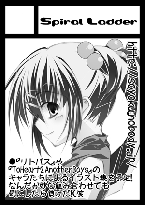 それに加えてアクセスも30000を超えましておめでたいおめでたい♪ (こういった)絵を描き始めたのが2006年の夏、このHPを開設したのが2007年の1月で、なんと気がつけば今は2008年に突入し、さらに2ヵ月が過ぎました。 絵描き歴的には今年の夏で2年ということになるのでしょうが、全然実感はわかないもんです^^; ・・・なもんで、ちょっと自分のブログで振り返ってみようかと(笑 こういうスペースを持ってると気持ちの整理が楽でいいですwww 馬鹿げた長文(自己満99%)なんで見たい人だけ見てねwww 親しい人は知っていると思いますが、俺が絵を描き始めてからの歴史なんて、(元々、美術・技術的な部類が好きだったってのはありますが)他人に流されてだったりします。 そもそも、俺が絵を描き始めたのはほぼ大学からだったりするんですけど、中学時代なんて、俺のころはまだ一家に一台PCがあるような時代でもなかったので、我が家にもPCは配備されておらず、高校時代でもPCというものに触れたのが結構後期のほうからだったりします。 ・・・というのも、高校時代は部活(バスケットボール部)でいっぱいいっぱいで、「遊び」ということもほとんどしてないような、「青春?何それおいしいの?」状態だったりしました。まぁ、単純に言えばスポーツマンオンリーな感じだったわけでw むしろ「オタク」と呼ばれる方たちを偏見し見下してました。さーせんwww 教室でシャナを読んでる同級生を見て「何読んでんの~www」ってからかってました。はい(←後にシャナでこっちに目覚める俺www) それが、部活を引退して、大学への進学も推薦とって・・・ とっても暇になったわけですww そんなこんなで、暇つぶしにPCに触れ始めたわけですが。 最初は当時放送していた「種デス」の掲示板に書き込みをし始め、仲のいいやつらができ始め、チャットなんかもするようになり。。。 そのうちその仲間の一人から「mixi」に誘われたわけです^^ そのmixiでも最初はまったく「絵」なんてものは存在しないページで、フツーにアニメの感想描いてみたり、日常の様子を綴ってる微笑ましいもの(?)でしたw 最初の頃なんて、その仲間内しかマイミクがいなくて「どーやったら増えるんだろ?」なんて悩んでいたりもwww(現在165人) そんな状態が変わったのがまさしく絵。 最初はほんの気まぐれで種キャラとかシャナとか、そこら辺を模写してUPしてたわけです。この頃は色塗る方法も知らなくて、ただ紙に描いた落描きを日記にUPしてコメントをもらっていたっていう・・・。 そして訪れたハルヒブーム!!! ライブアライブで今までのアニメ観をフルボッコにされた俺は、衝動を抑えきれずにハルヒキャラ達のライブverを描き始め、mixiのイラスト系コミュ内の投稿トピにUPし始めたわけです。 もう、そこからは勢いに任せて・・・というか、流されて(えw イラストを見てくれた方からマイミクは増えに増え始め。 そんなみんなが描いた絵に日記でコメントをくれるっていうキャッチボールが楽しくて楽しくて。 無我夢中でひたすらに描いて描いて。 そんな中「色も塗ってみたら?」なんて言われて、お金はかけられないからフリーのGIMPに手を出して(いまだに現役^^b そんな調子のくり返しくり返しでしばらくは続いて、そんな中嬉しい出会いが多数ありました。 現在も所属させていただいている『SOS団音楽隊』と出会ったのも、現在の相棒と出会ったのもこんな流れの中だったりします。 音楽隊のデビューは2006年の冬コミでして、俺自身は北海道住まいでまだ金も持ってなかったんで現地に行くことはできなかったんですけど、自分の描いた絵がとても多くの人の目に触れて、金を出して買っていく人もいてって部分にびびりっぱなしだったりもしました。(これは今でもあるんだけど^^;) コミケが終わって、メンバーの方に「絵も好評だったよ~」なんて言われて恐れ多くも嬉しさMAXではしゃいでたわけですが、これを機に「HPを作る」ってことを考え始めました。 ようは、「気に入ってくれた方がググってもサイトなんて存在しないから見つからない。」 ・・・これは悲しいだろう。と思ったわけでw マイミクの方に作り方を聞いて、あとは自力でググって調べて・・・の繰り返しでHPを完成させたのが去年の今頃。 それからも、怒涛の如くいろいろあって・・・ 音楽隊は着実に歩を進めて行って、そんでもって2007年の夏コミで、はじめて俺自身のコミケ現地参加+同人誌頒布。これはデカかった。本を出したってことも、現地に行くってのも、それまでの自分とは気持ち的に天と地ほどの差がある。 そして、大きな転機ともなった一迅社様からの「リトルバスターズ!コミックアンソロジー」の依頼があり(実は以来自体は夏コミのギリ手前あたりw)、その後、相棒を招き入れてのSpiral Ladderのサークル化。 そんなこんなで、次回2008夏コミックマーケットに初めて螺旋単独で申し込みをしているのが現在w まぁ、さすがにハショリまくってるわけなんだけど、これだ